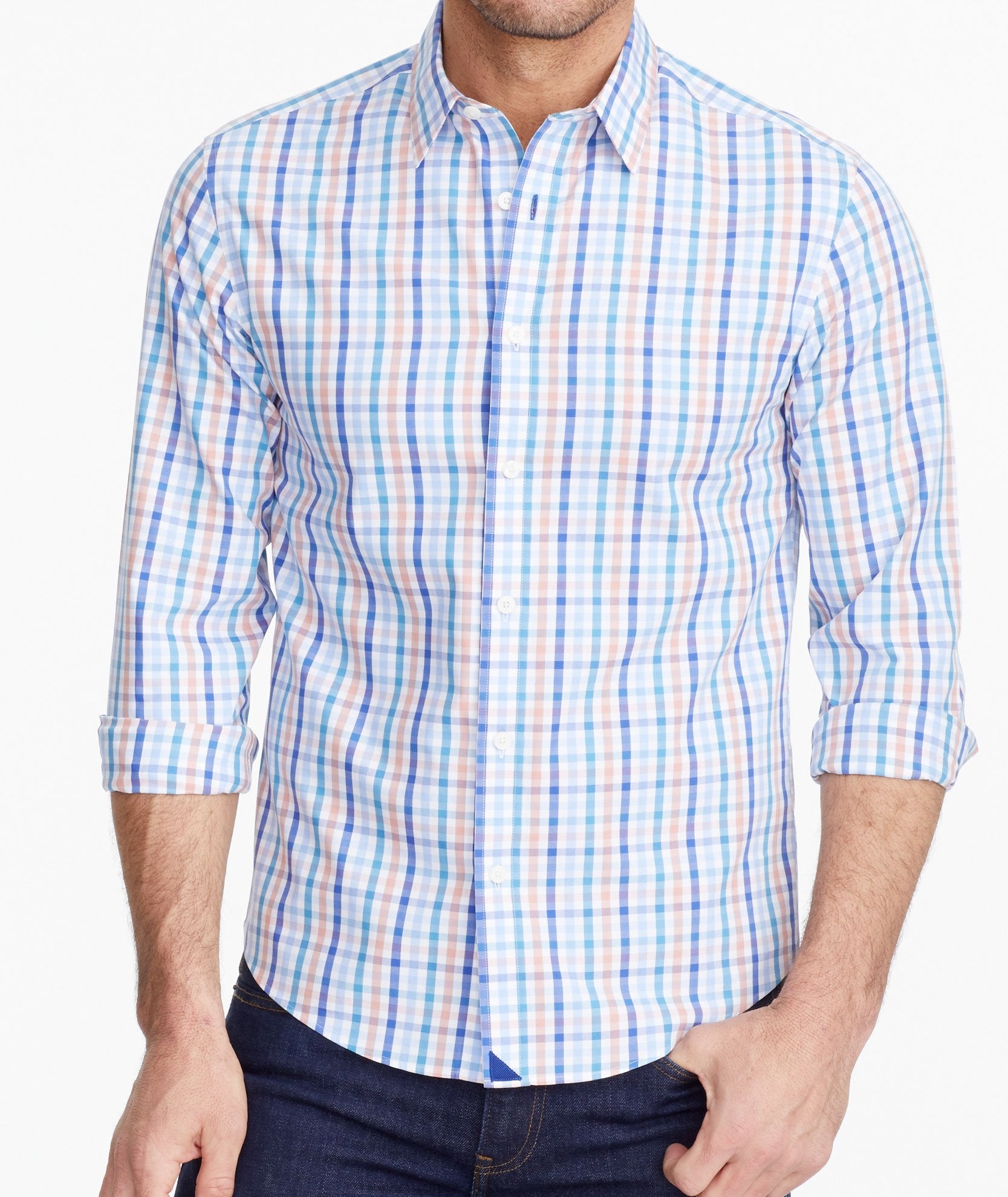 Get that fresh-pressed look with our wrinkle-free Barone Shirt. The fabric never needs ironing, the fit is precise, and like all of our shirts, it has that just-right untucked length. Pair this colorful check style with our Chino Pants to stay cool and crisp all day.