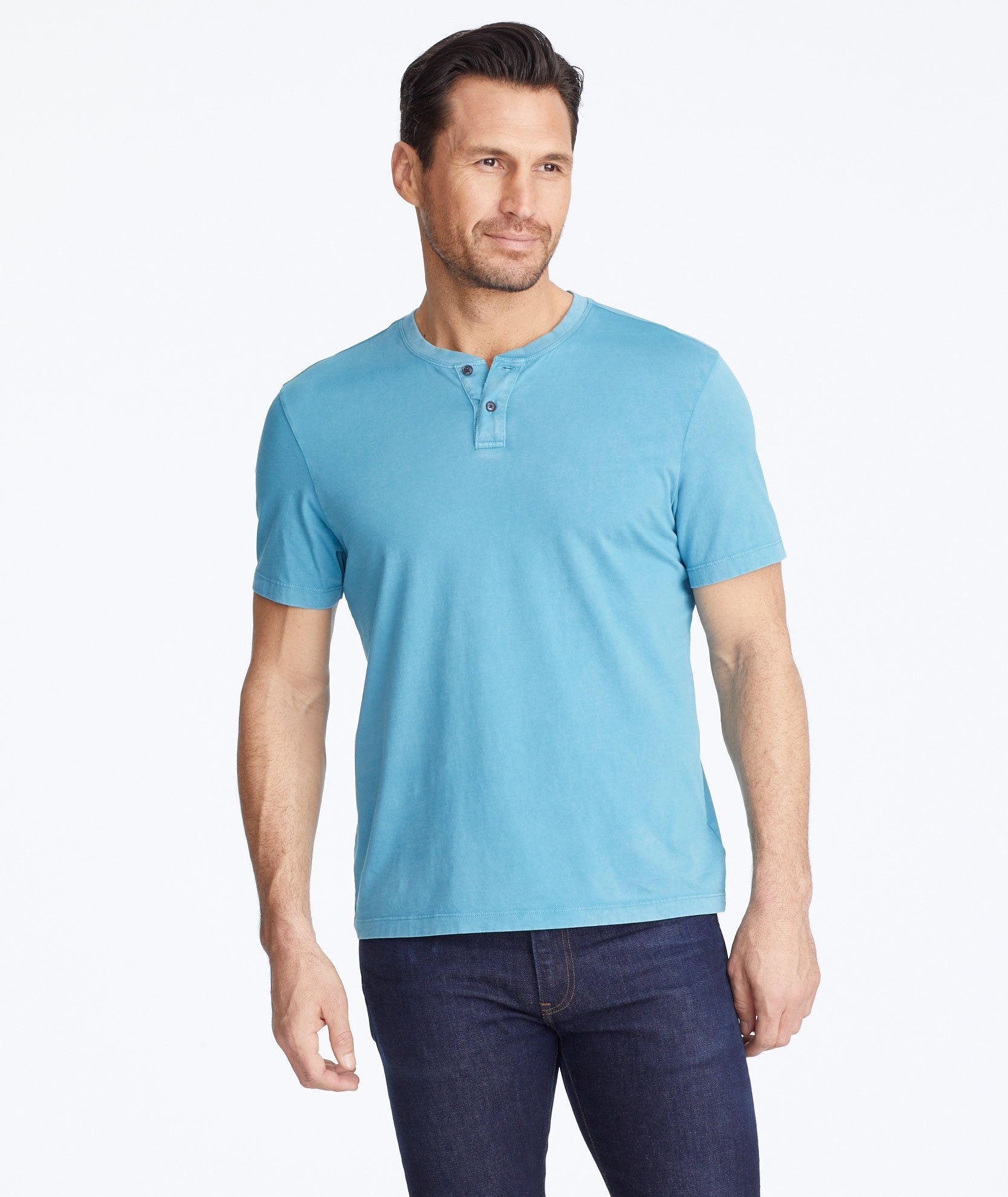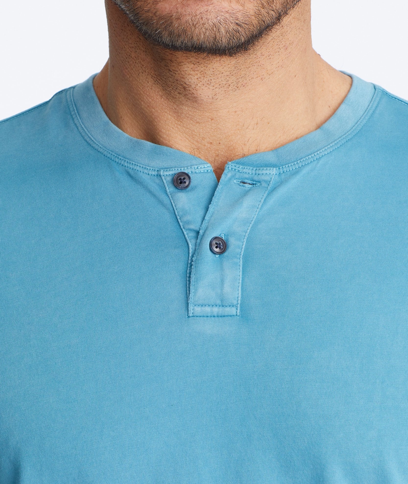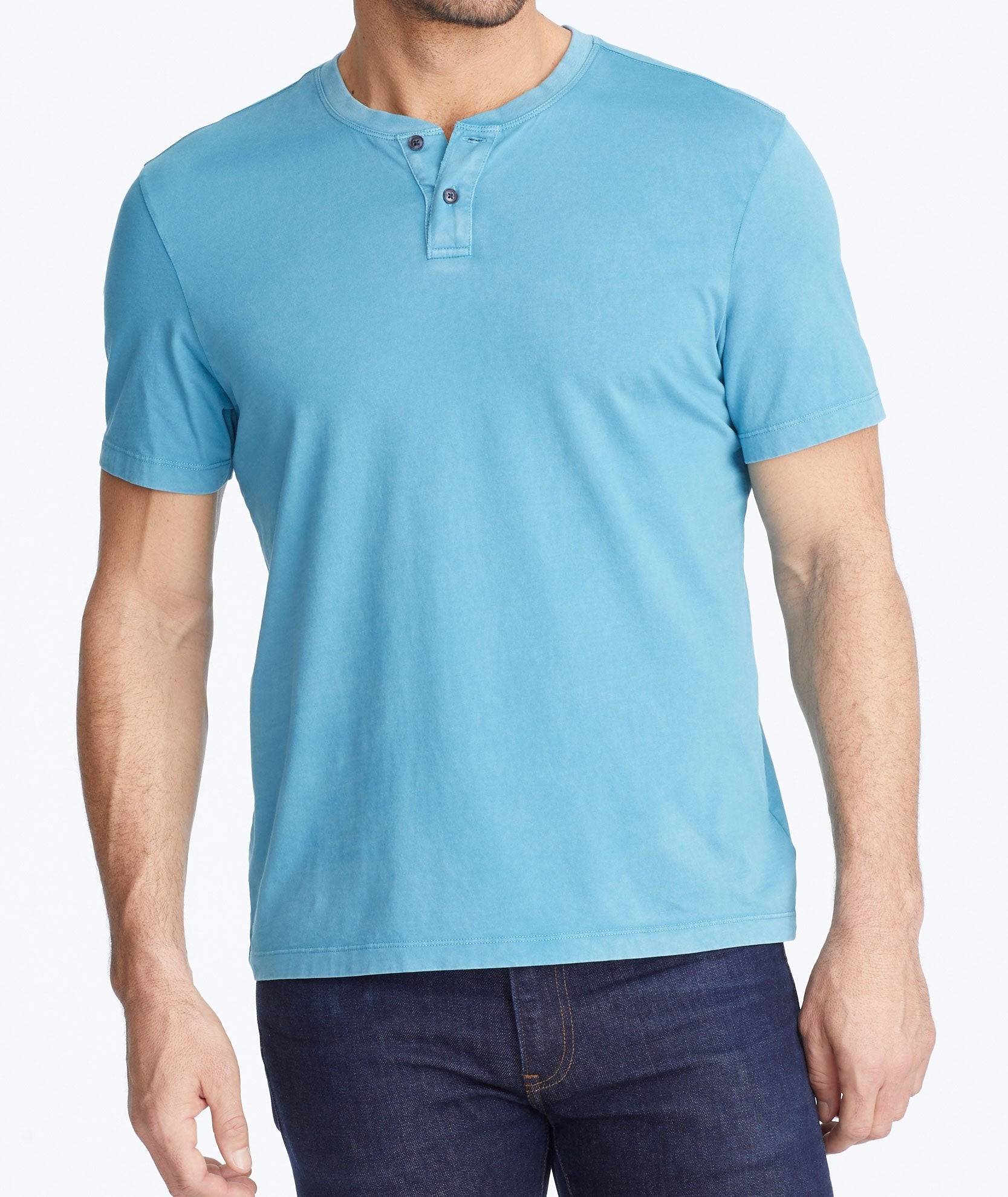 Meet your closet’s new favorite Henley. Made from 100% Pima cotton, the short-sleeve Baxter is the weekend shirt you’ll want to wear every day of the week. In a colorful pop of teal, its unique vintage wash gives it a worn-in look and it's designed to keep its shape through countless laundry cycles.