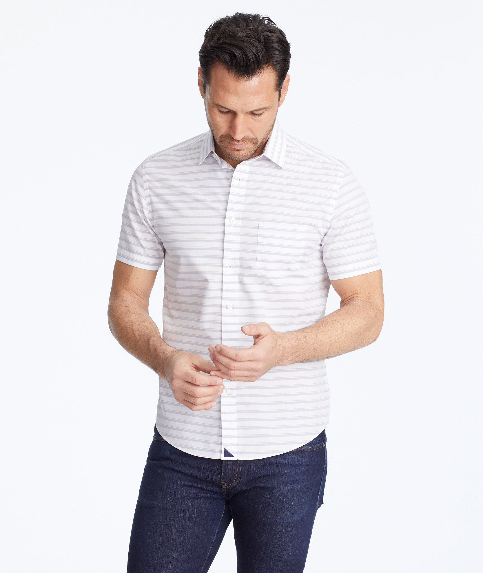It’s time to ditch your iron. Our wrinkle-free fabric makes creases a thing of the past. The precise fit, perfect length, and supersoft material make for a shirt that looks sharp and keeps you comfortable. Pair our pink and gray striped Beringer Shirt with our Chino Pants for a classic look that'll never go out of style.