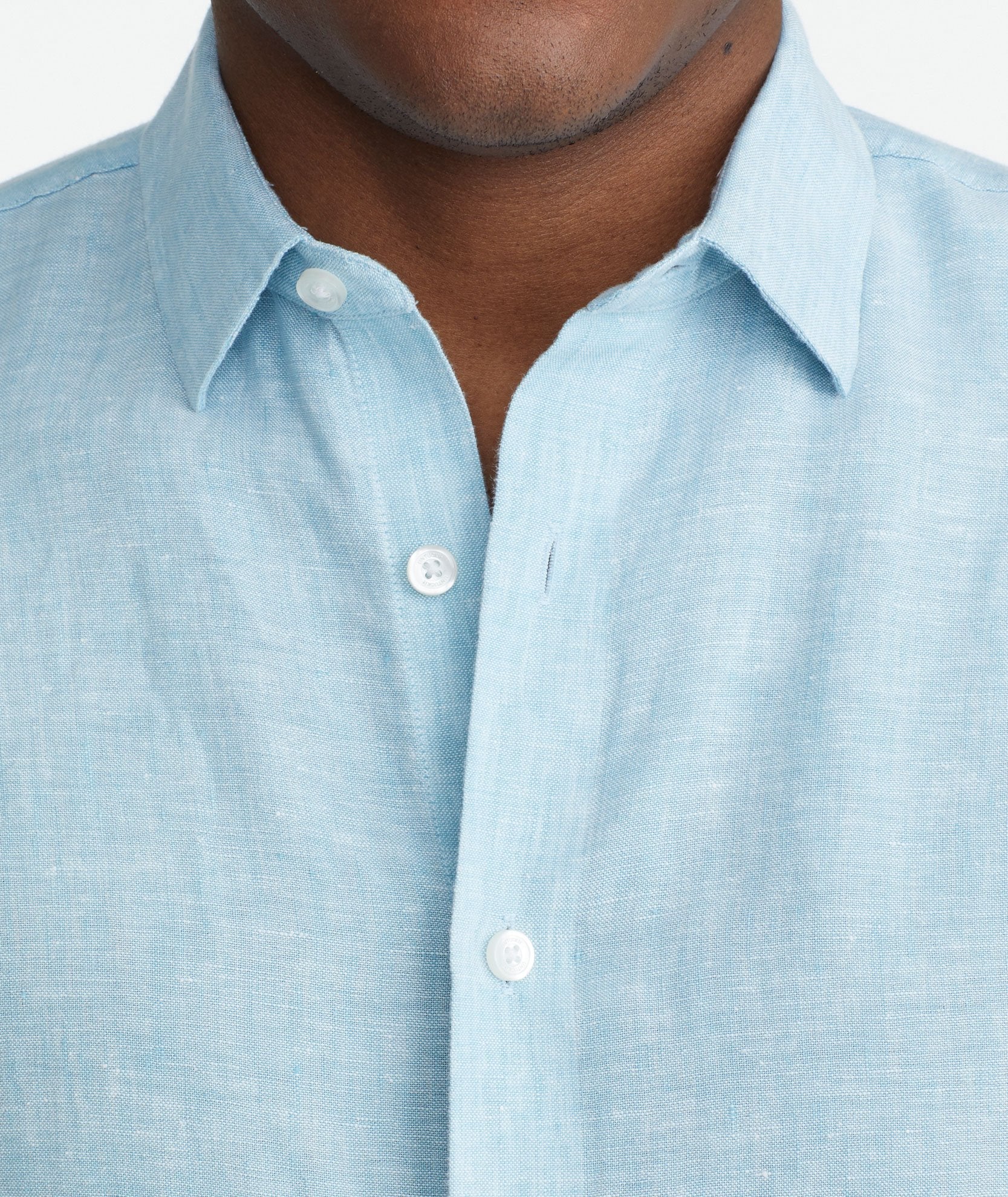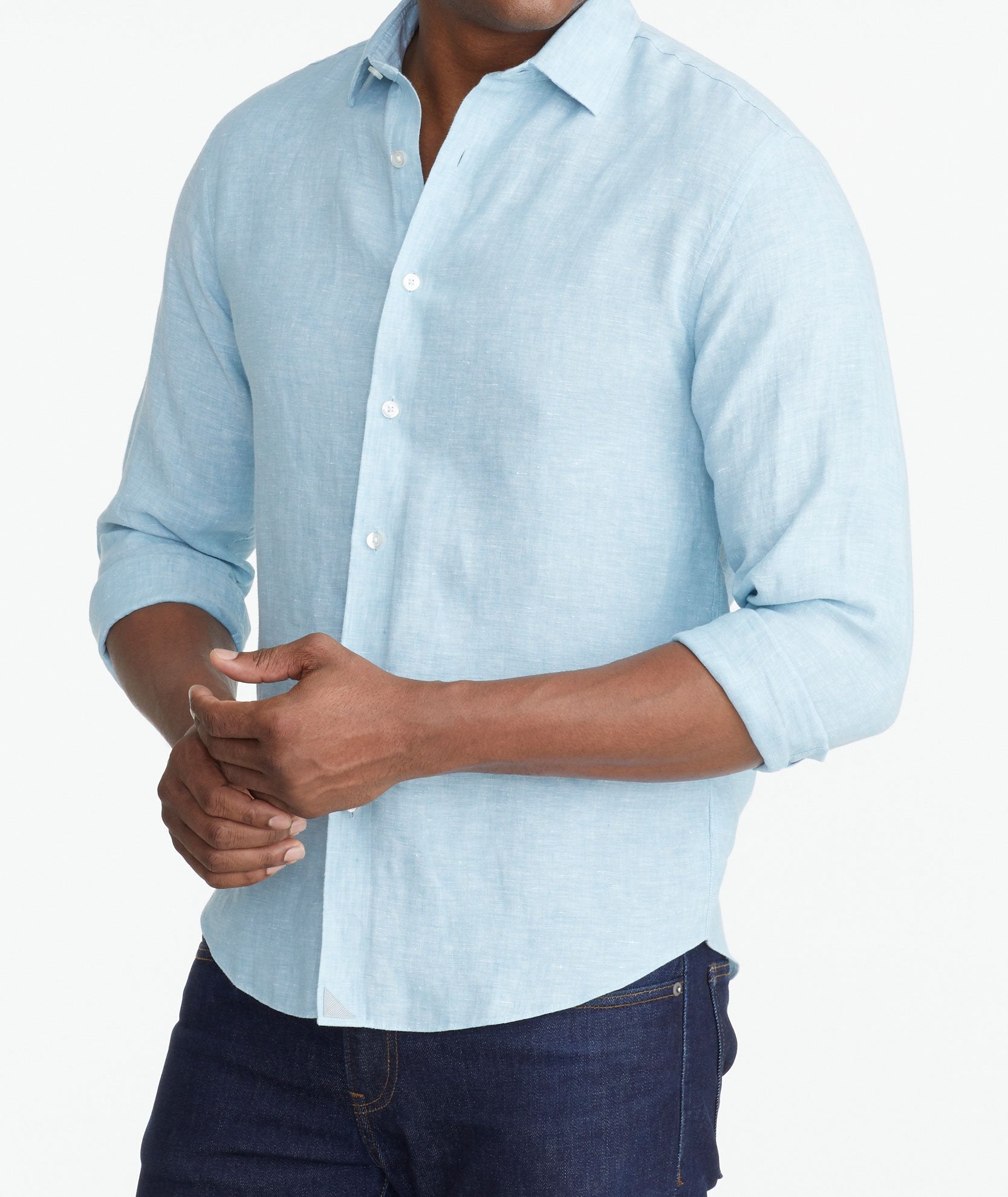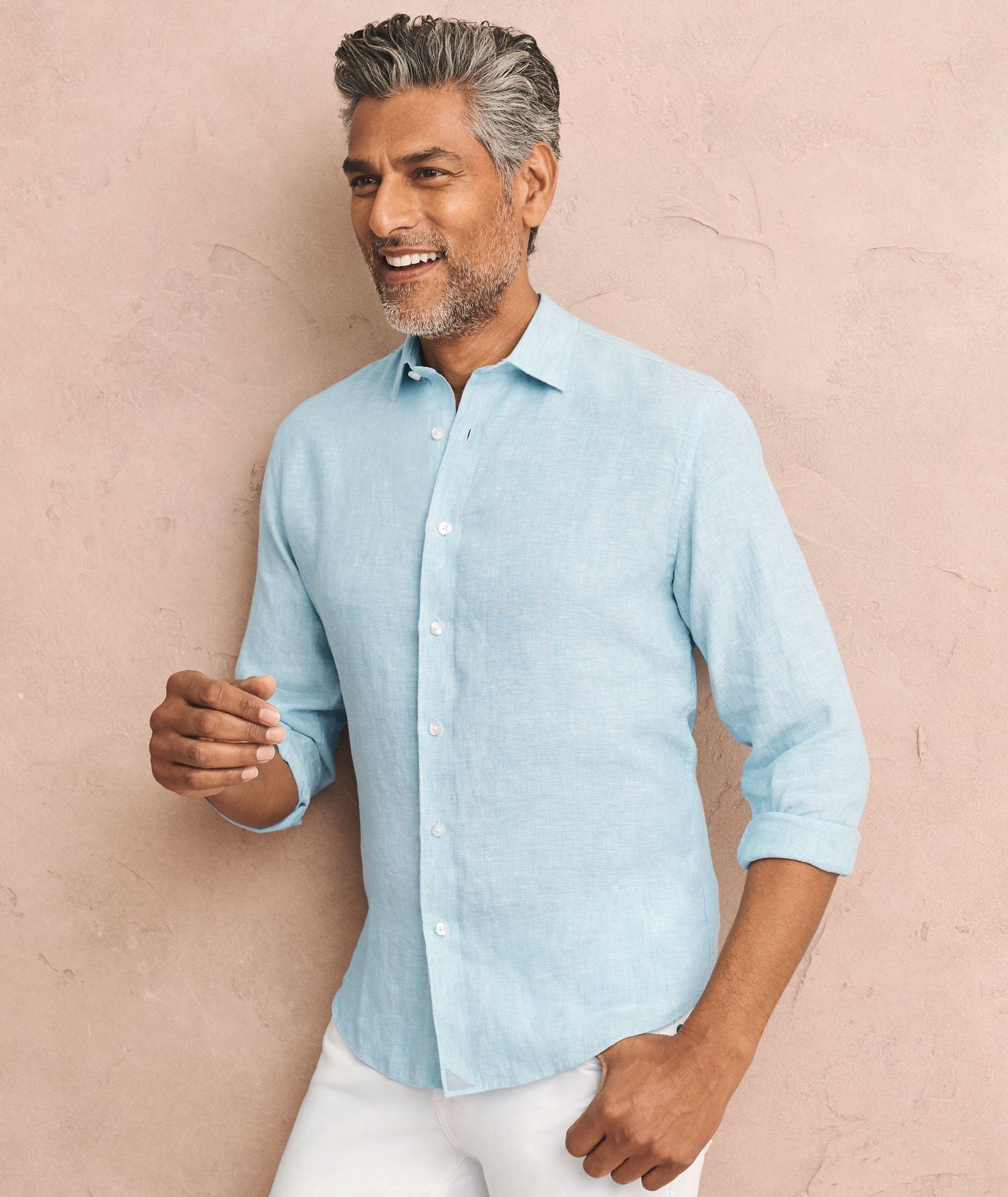 Finally, a lightweight linen shirt that doesn't wrinkle instantly. The crease-fighting finish on this season-ready shirt means it stays sharp longer than a traditional linen shirt. Plus, it's easy to care for—just wash, dry, and go!