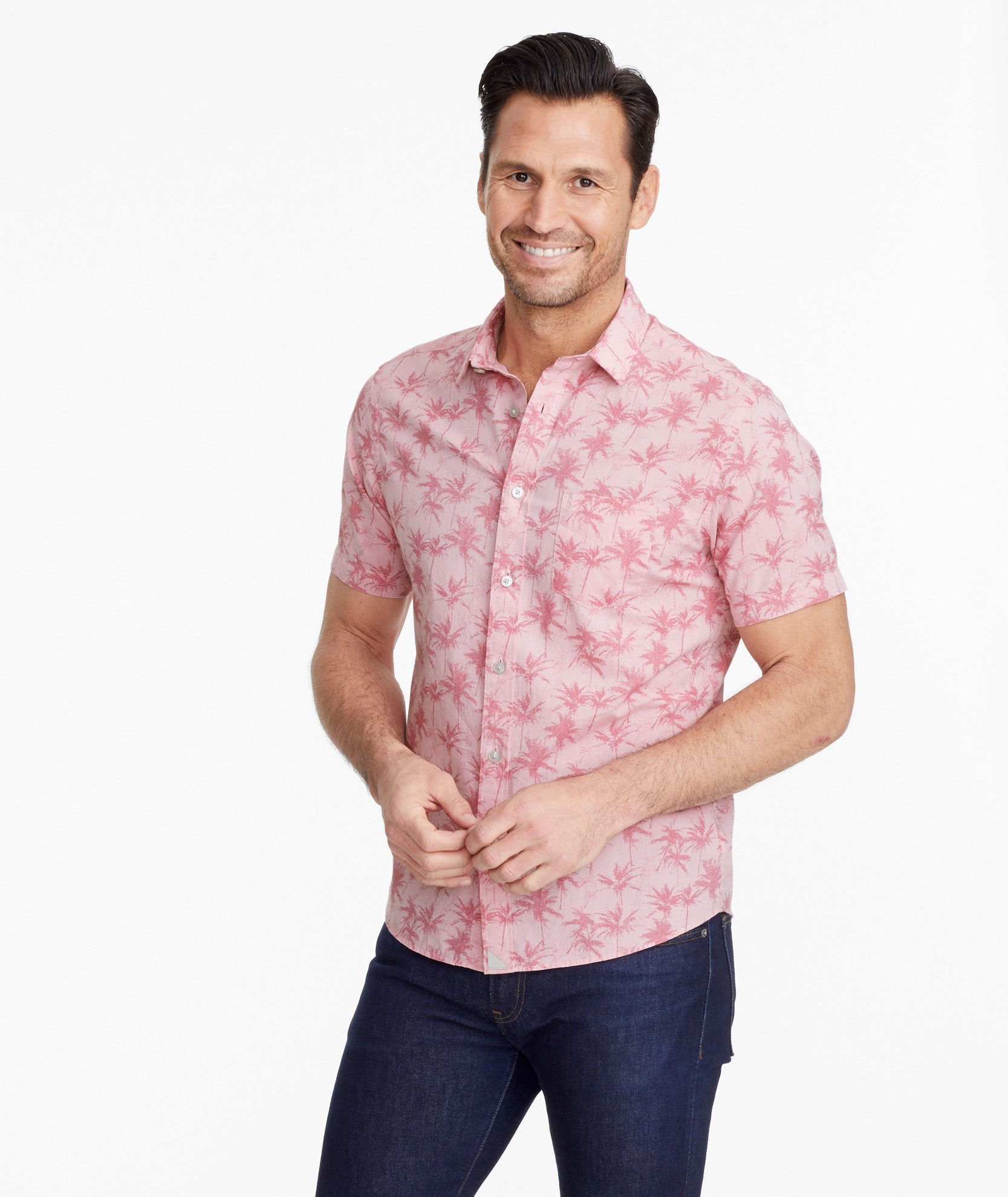 The perfect short-sleeve button-down is a warm-weather essential. Our 100% cotton Moldavia Shirt boasts a tropical print that'll put you in a sunny state of mind, and it has our signature untucked length. Pair it with our Cotton-Linen Shorts for a truly breezy vibe.