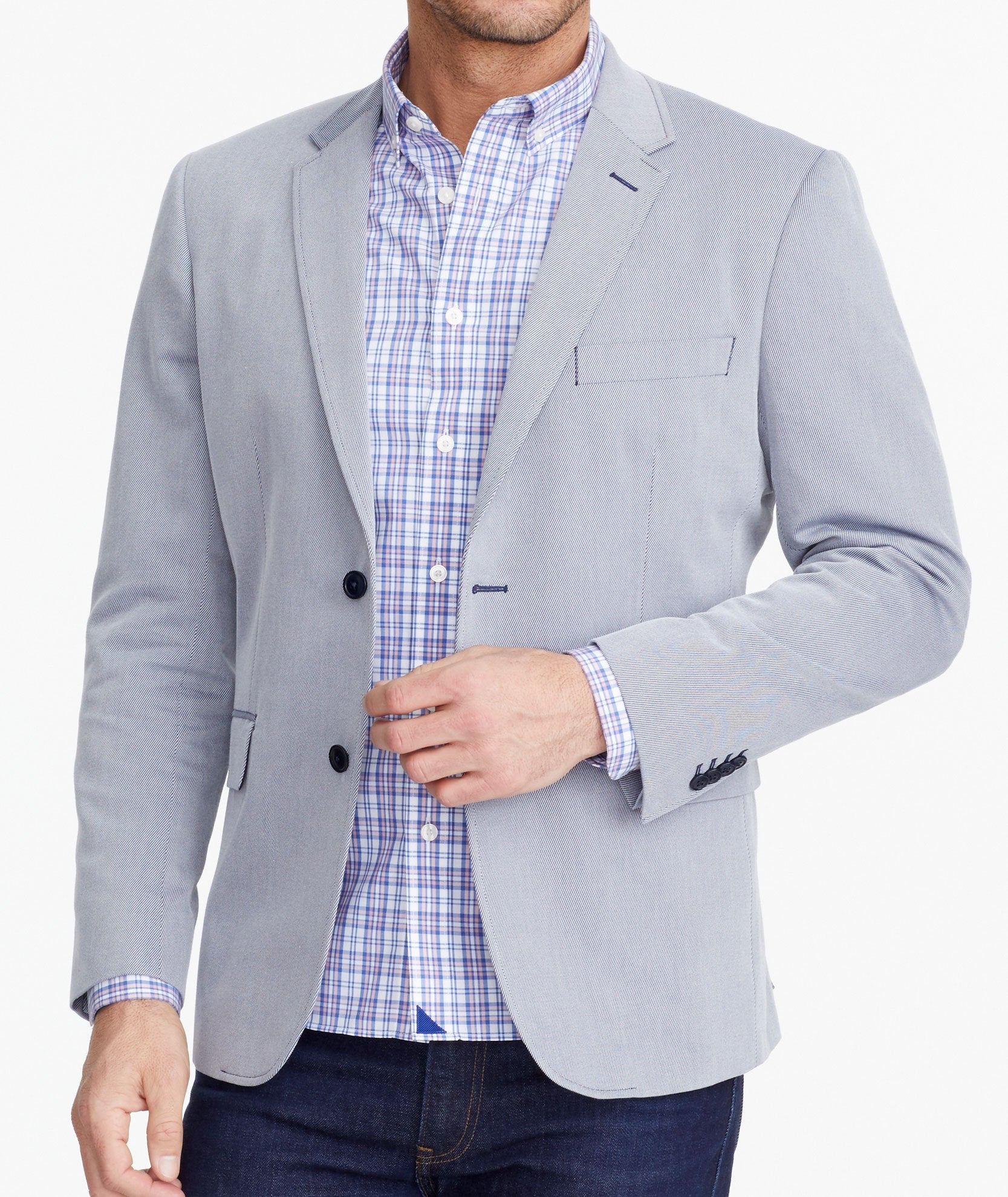 The Cotton Vercelli Sport Coat effortlessly dresses up any of our iconic untucked shirts. Woven at the world's best mills, our sport coats are essentials in every man’s wardrobe. Their flattering construction is enhanced with quality details—structured collar, absorbent underarm patch, contrasting thread accents, and more. Pair this one with a light-colored solid shirt for a cool, classic look.