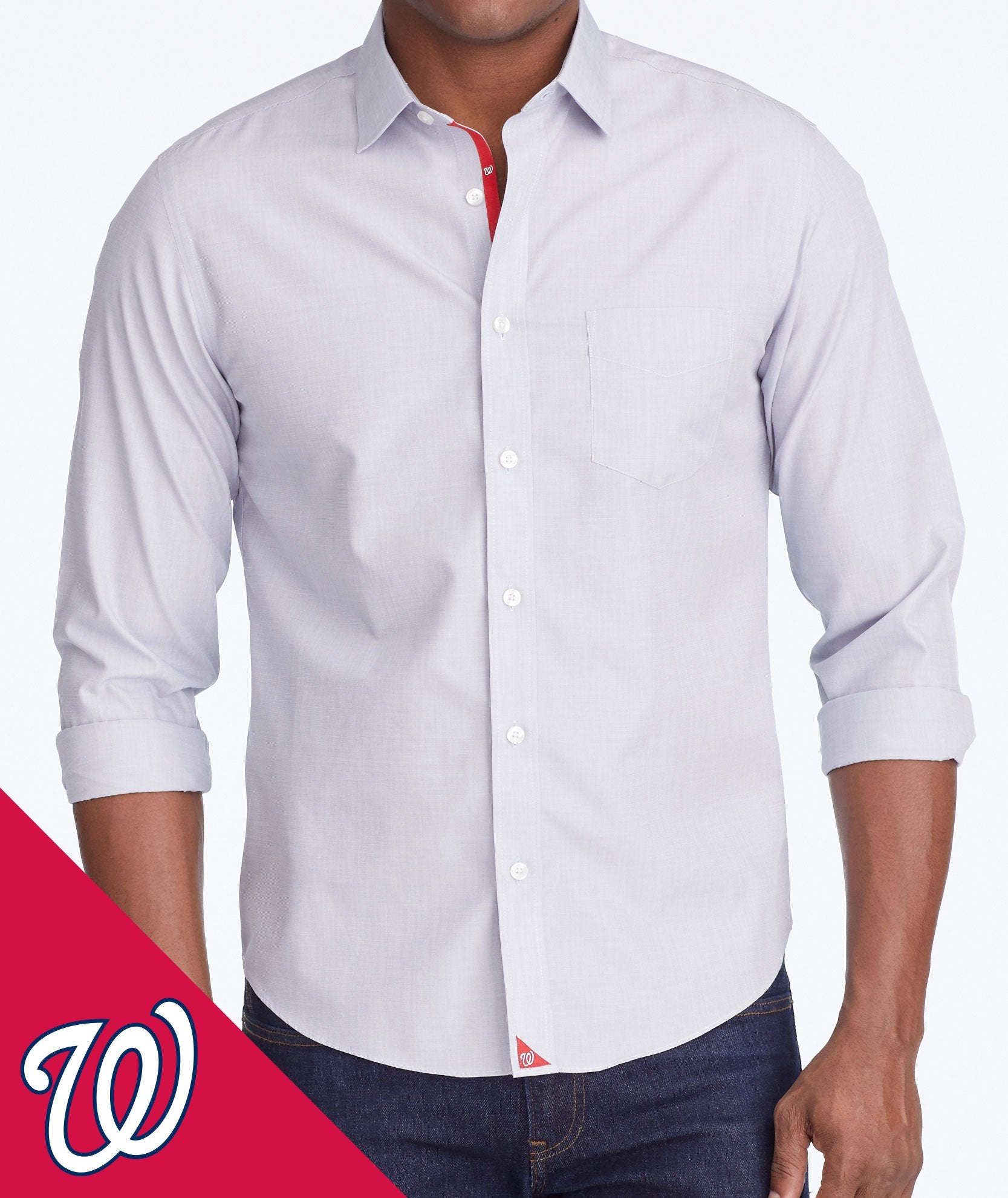 Good news, Nationals fans. You’re getting a new uniform. Our bestselling wrinkle-free shirt is now part of the MLB Signature Series. This gray poplin style features the Nationals logo on the placket as well as on the sail—a smart, subtle way to show off your team pride.